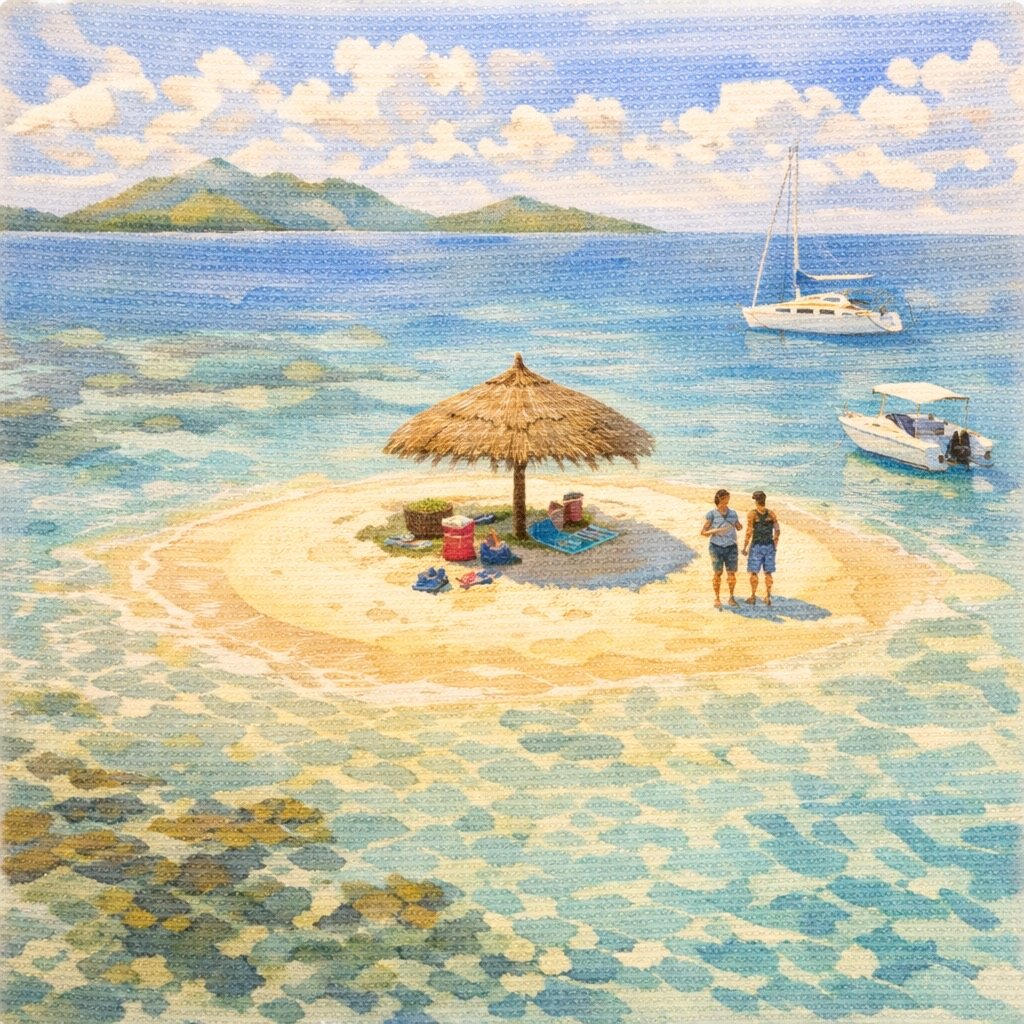 The world’s smallest “island” worth visiting. It is nothing more than a shifting sandbar in the middle of the ocean, adorned with a single thatched umbrella. It is the ultimate castaway fantasy—bring a cooler, drop anchor, and claim your own temporary kingdom before the tide comes in.