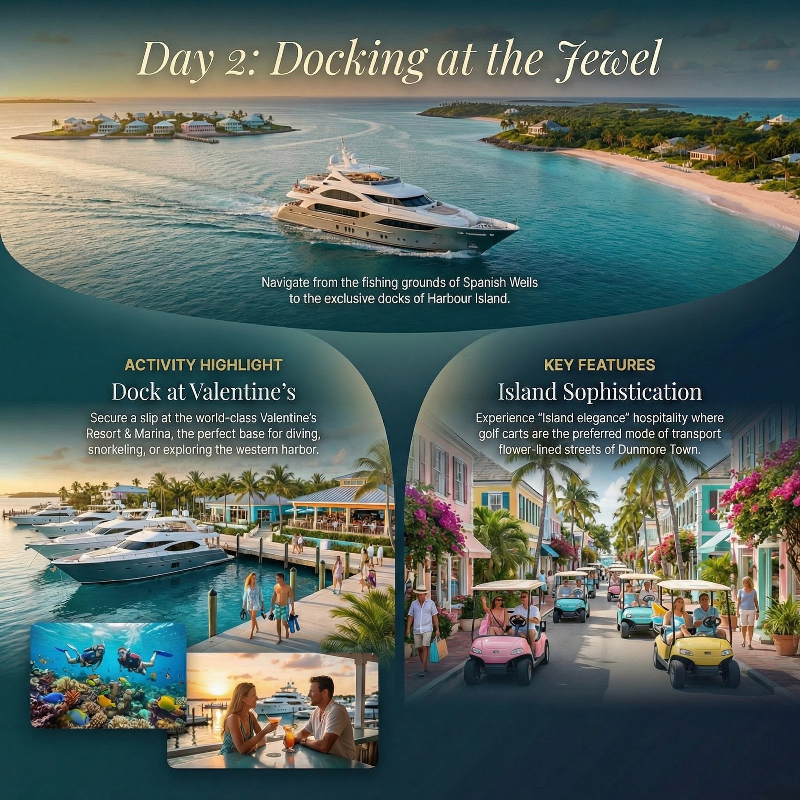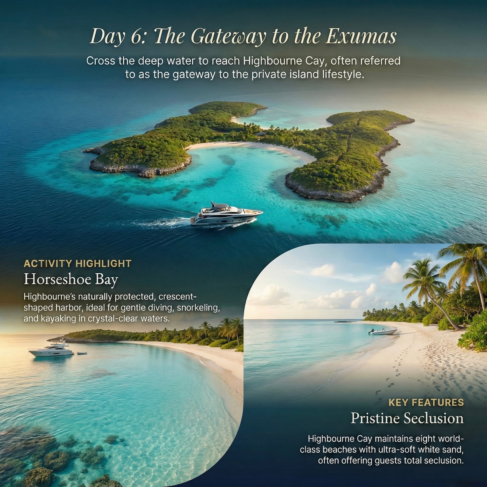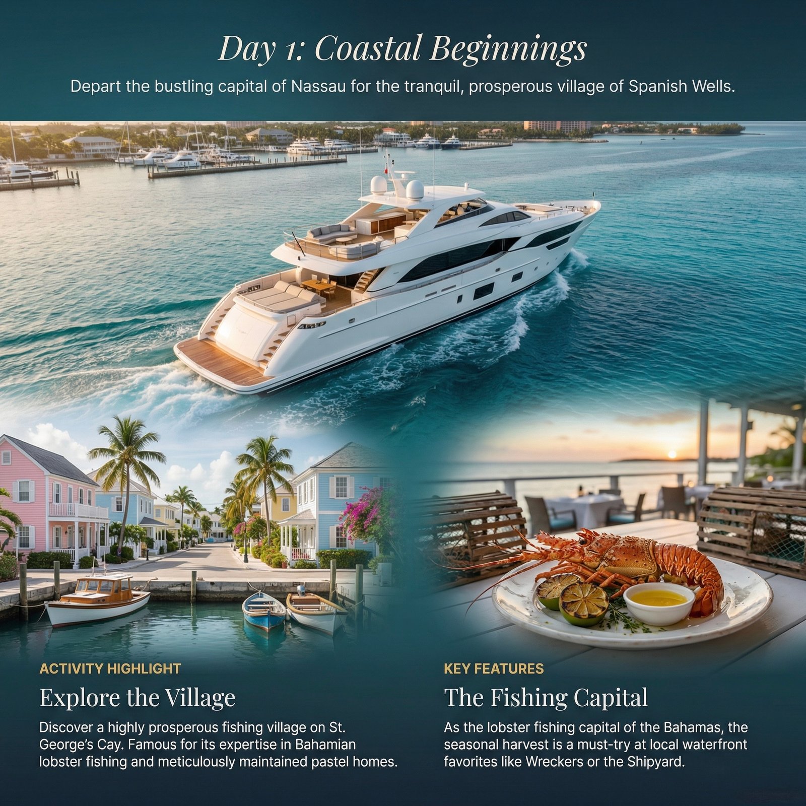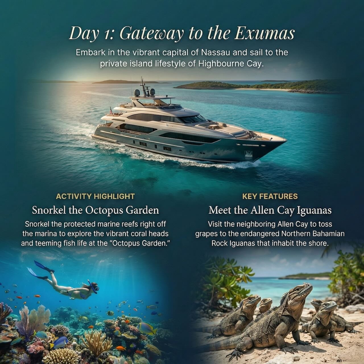 The Bahamas is not just a destination; it is a lesson in the color blue. Comprising 700 islands and cays, this archipelago offers a spectrum of cyan so electric it looks Photoshopped. The cruising grounds are defined by shallow, gin-clear banks that allow you to spot starfish on the bottom from the flybridge. It is a region of stark contrasts: you can spend Friday night playing baccarat in a tuxedo on Paradise Island and Saturday morning feeding iguanas on a deserted cay where the only footprints are your own.