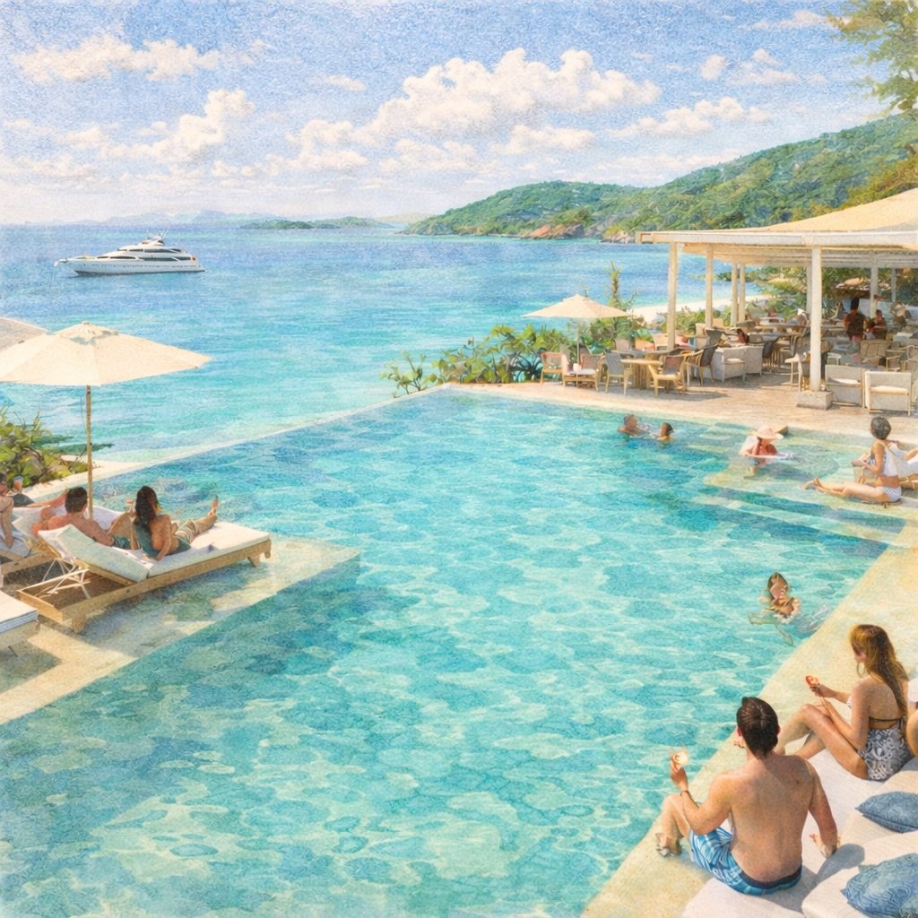 A chic newcomer bringing a touch of St. Barts flair to US waters. This private island retreat features an infinity pool that seems to spill directly into the ocean and a restaurant serving elevated coastal cuisine. It is the premier spot to dock for a sophisticated, “rosé-all-day” afternoon.
