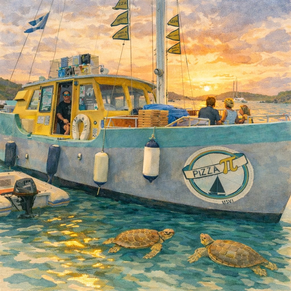The Caribbean’s original food boat, anchored in a protected cove known for its turtle population. This aluminum sailing vessel churns out New York-style pizzas that are delivered via dinghy. It is the quintessential charter stop for a casual, sunset dinner on the aft deck.