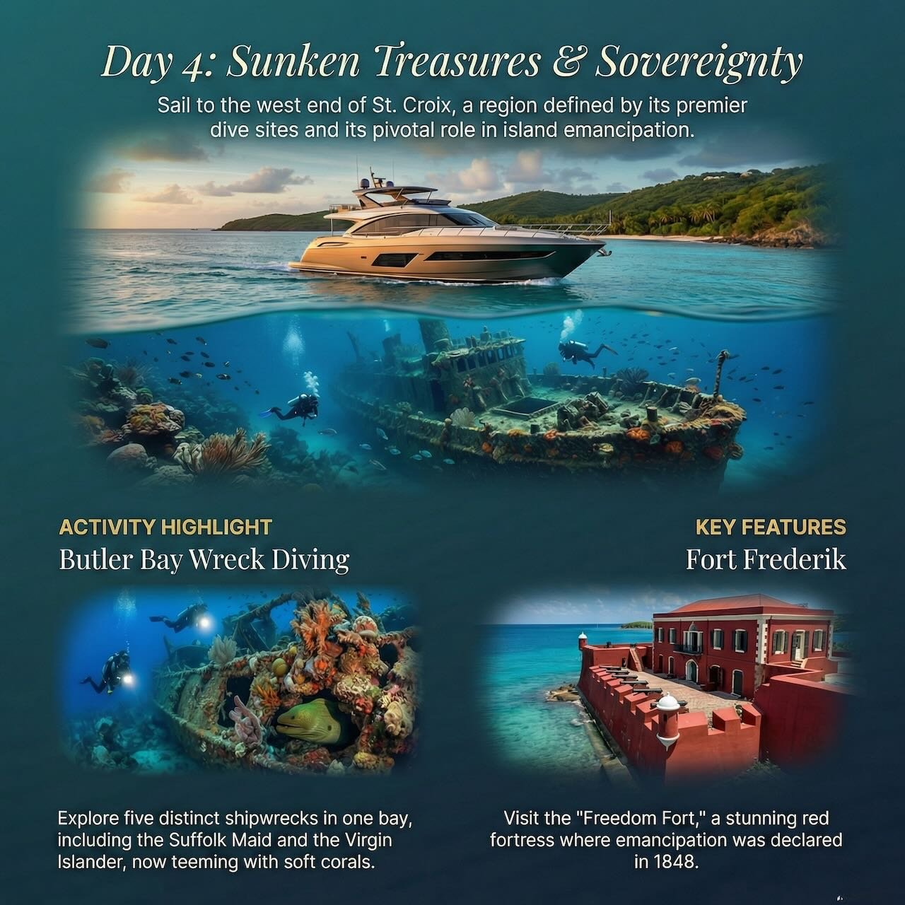 Sail to the west end of St. Croix, a region defined by its premier dive sites and its pivotal role in island emancipation.