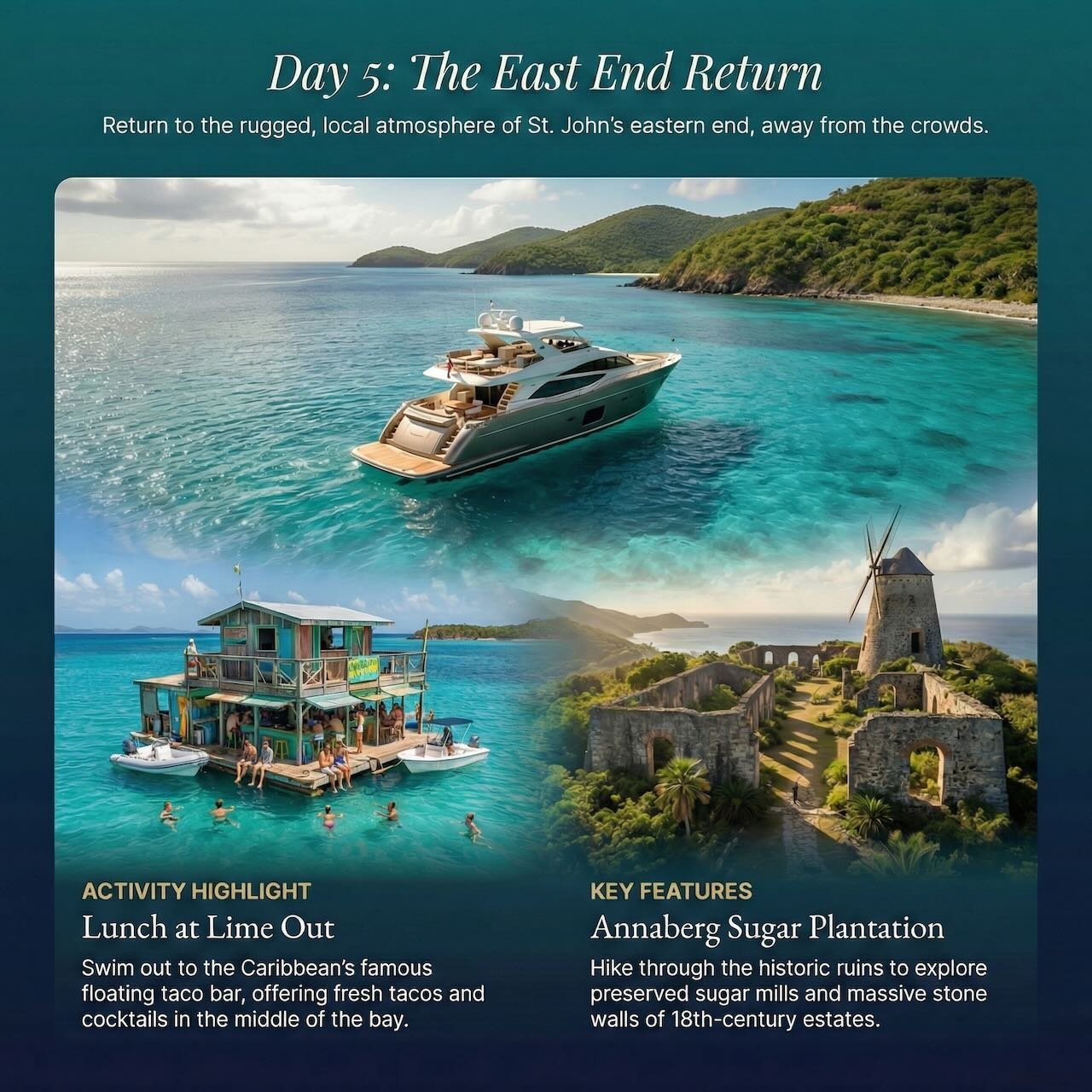 Transition from the bustling historic docks of St. Thomas to the charming harbor of Cruz Bay, the sole port of entry for St. John.