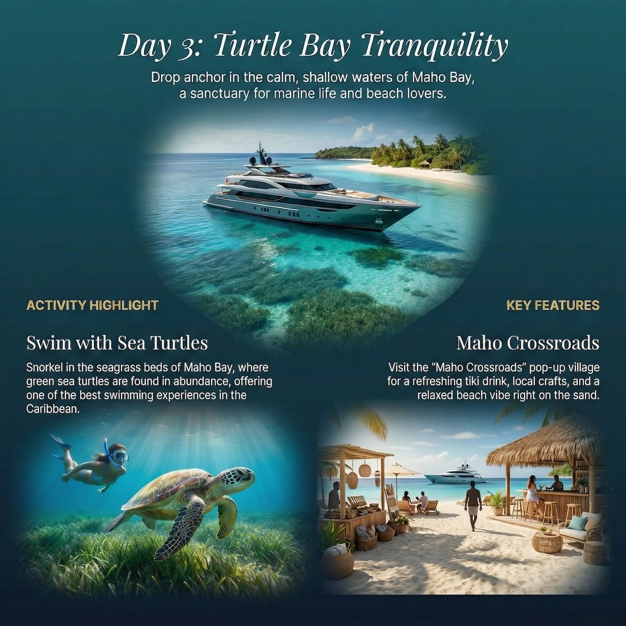 Visit the “Maho Crossroads” pop-up village for a refreshing tiki drink, local crafts, and a relaxed beach vibe right on the sand.